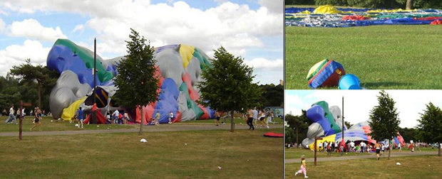 2006年7月,英国达勒姆郡公园内,当游客们开心地玩耍时,忽然一阵狂风将一只占地达2500平方米的庞大气球刮上了9米高空,而正在气球内玩耍的所有游客也随着气球一起被卷到空中。2名女游客不幸从气球上坠地而丧命,另有13名游客受伤。