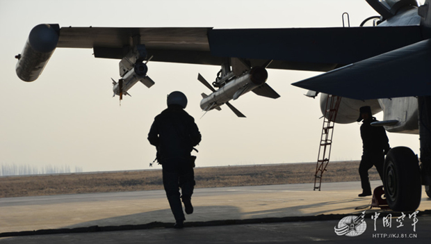 中国军网空军频道:冬日的一个上午,随着一阵尖厉的战斗警报声响起,兰空航空兵某团飞行员侯占奇和黄保军抓起作战装具,箭一般冲向战机。随着指挥员一声令下,两架新型战机编队腾空而起。