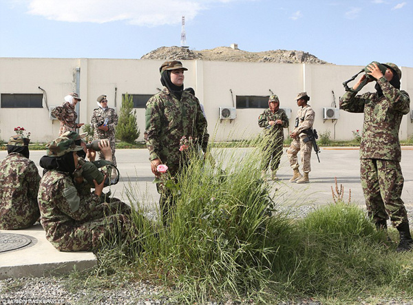 当女兵们穿上军装巡逻时,你很难从外表分辨出她们